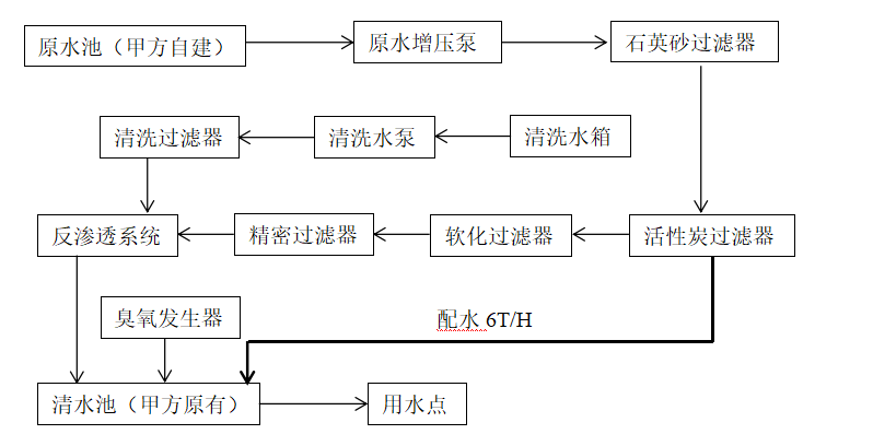 本工藝方案是根據(jù)用戶要求,本著工藝設備先進、可靠、最大限度地提高系統(tǒng)的性能價格比的原則進行設計。系統(tǒng)采用“原水系統(tǒng)+預處理系統(tǒng)+反滲透膜系統(tǒng)+配水系統(tǒng)+消毒系統(tǒng)為一體的全自動成套設備”水處理工藝,該系統(tǒng)能夠保證需方各類品質(zhì)用水需要,方案設計合理、運行穩(wěn)定、并已在多項類似工程中得到應用及檢驗。